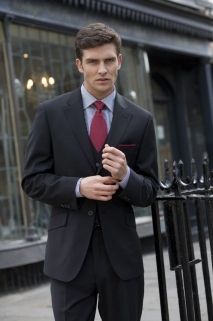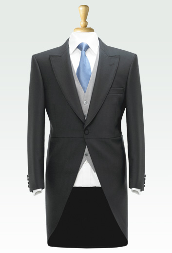 Traditional striped morning trousers in the timeless classic black and grey stripe with light grey pin striped pattern. Available in waist sizes 28 - 52.